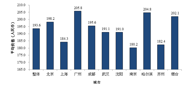 下图载列按中国不同城市划分购买作个人饮用的葡萄酒之平均价格: