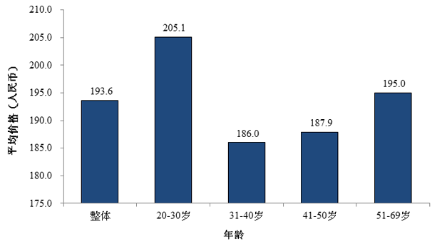 下图载列按年龄划分购买作个人饮用的葡萄酒之平均价格:
