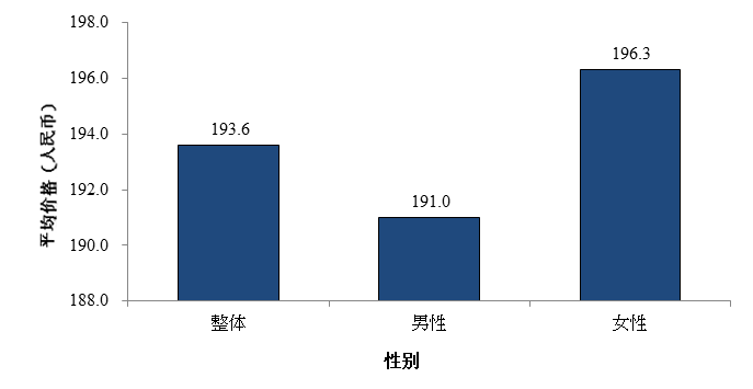 下图载列按性别划分购买作个人饮用的葡萄酒之平均价格: