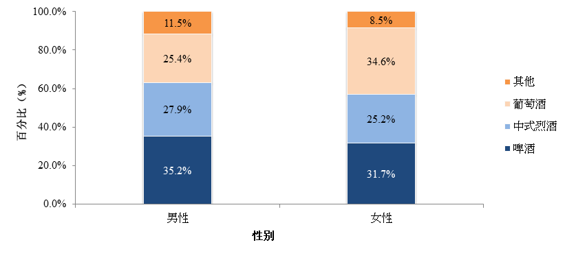 下图载列按性别划分线上各酒类产品的总支出分布: