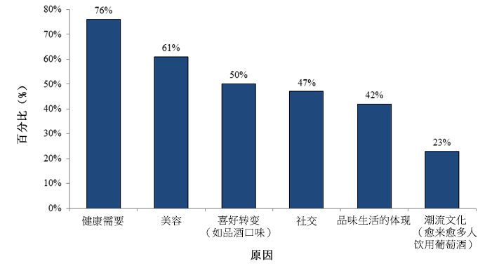 下图载列女性消费者饮用葡萄酒的主要原因之百分比: