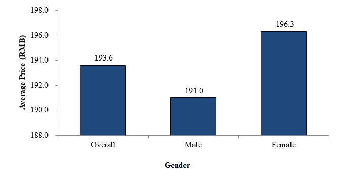 The chart below illustrates the average price of wine bought for own consumption by gender: