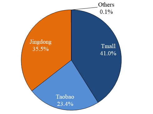 According to Exactdata, Tmall, Taobao and Jingdong are the online retail giants which accounted for aggregate 99% of the total online sales volume. Tmall appears to be the largest online sales platform for wine.